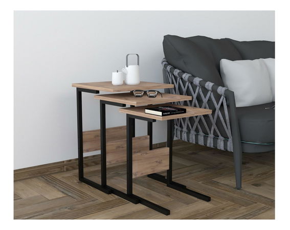 Set 3ks. konferenčních stolků Bameni (černá + borovice atlantická)