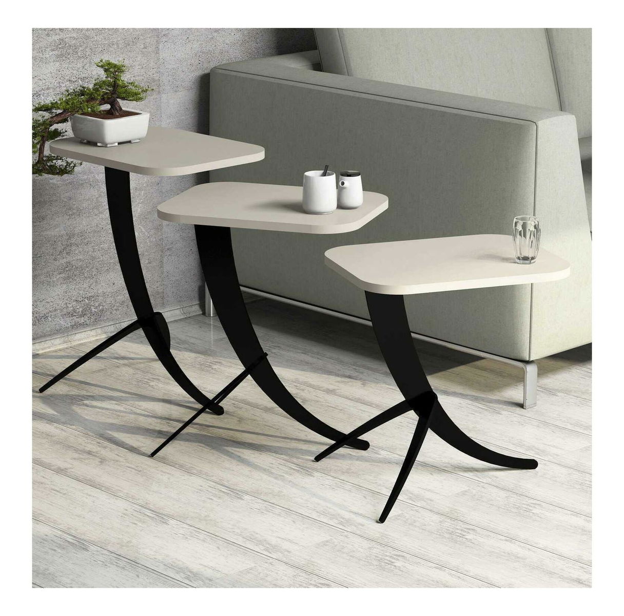 Set 3ks. konferenčních stolků Minuno (krémová)