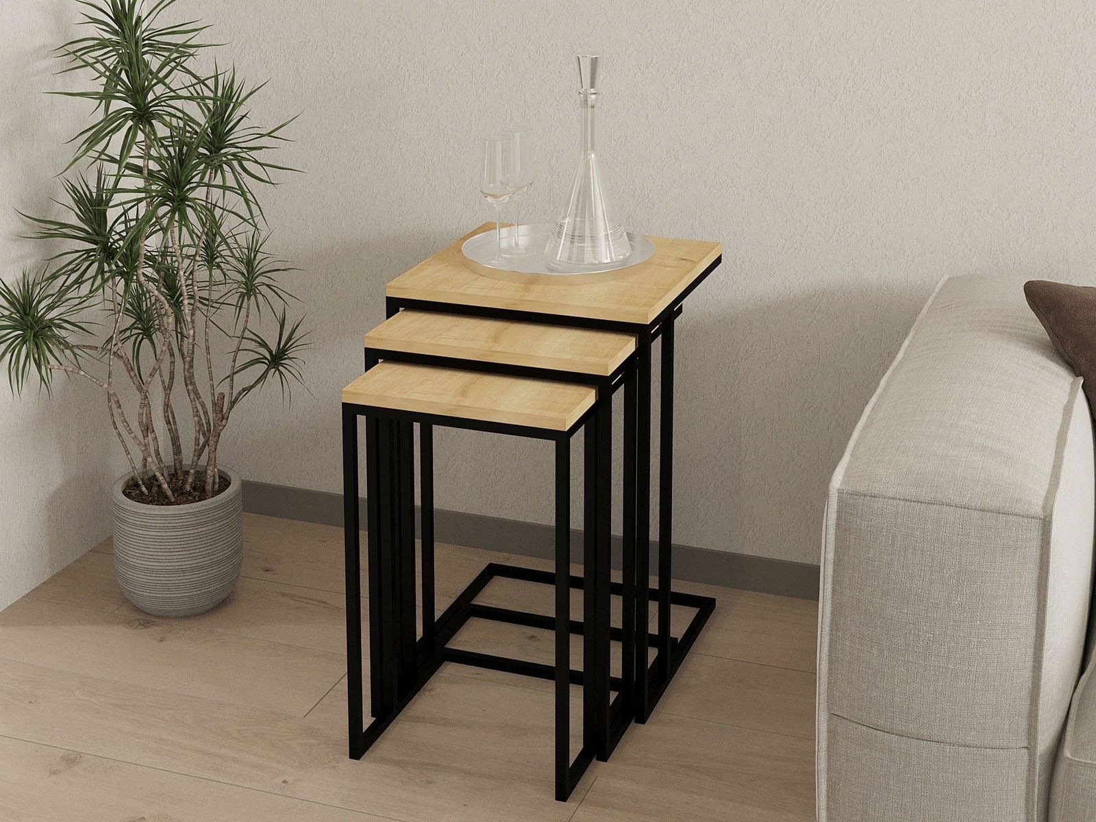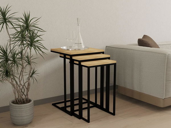 Set 3ks. konferenčních stolků Vudema (dub safírový + černá)
