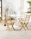 Tato jedinečná sada čtyř židlí je elegantní volbou do jakékoli místnosti v domě. Skládací židle jsou ideální pro malé místnosti, protože poskytují místo k sezení pro další hosty a ve složeném stavu zabírají málo místa. Tyto židle z bukového dřeva mají klasický tvar, ale jejich metalický povrch jim dodává moderní nádech. Funkční a stylová souprava může posloužit při různých příležitostech, ale také jako součást běžného vybavení domácnosti.