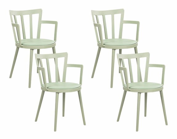 Vylepšete svůj zážitek ze stolování pomocí této elegantní čtveřice židlí ze syntetického materiálu. Tyto jídelní židle, které jsou pohodlné a stylové, se pyšní čalouněnými sedadly a lamelovými opěradly a jsou ztělesněním moderního minimalismu v té nejlepší podobě. Vychutnejte si budoucnost stolování v bezkonkurenčním pohodlí a sofistikovanosti.