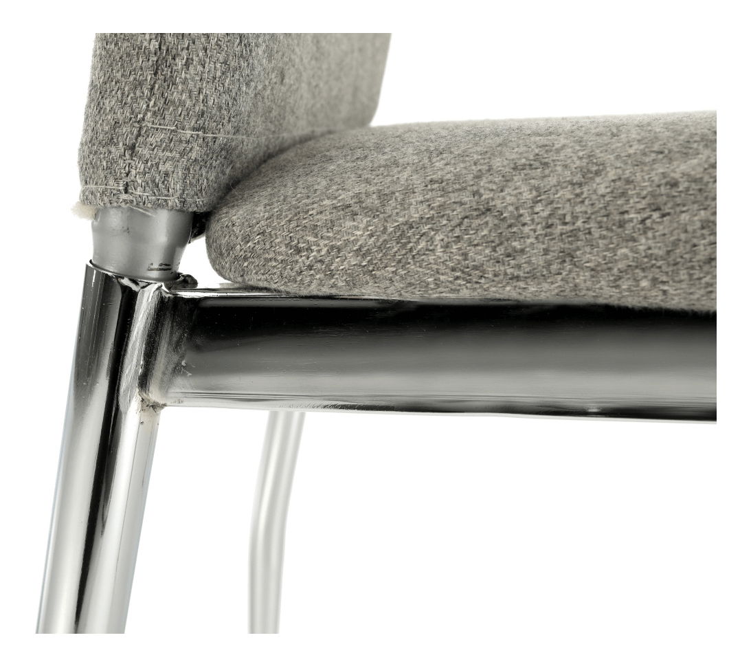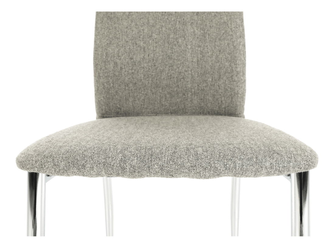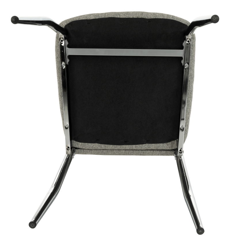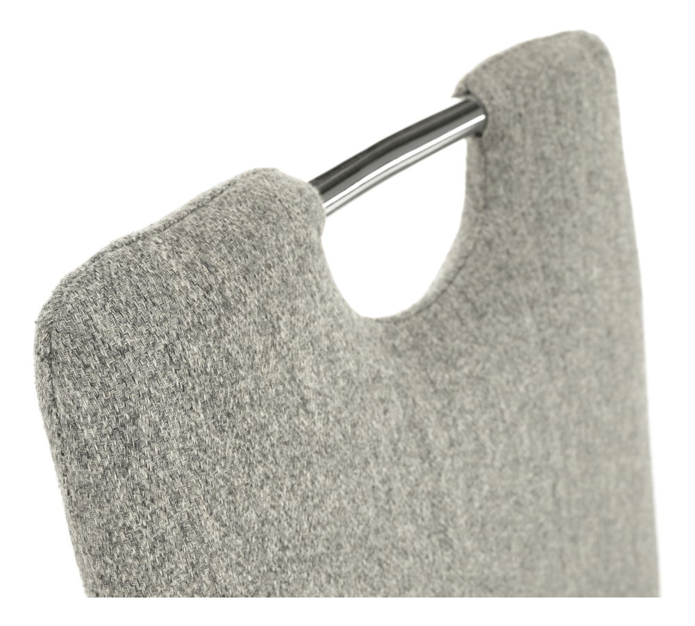 Pěkná jídelní židle, která má zaoblené opěradlo s výřezem ve vrchní části a zaoblené chromové nožičky.