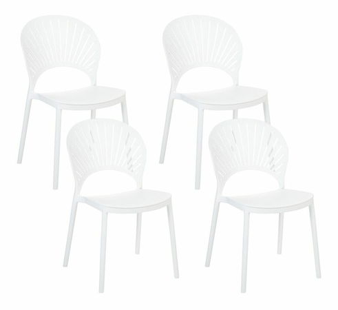 Tyto židle se zakřiveným opěradlem v krásné nadčasové bílé barvě jsou funkčním a stylovým kouskem do vaší domácnosti. Jelikož jsou vyrobeny z plastu, můžete je použít v kuchyni, jídelním koutě nebo na zahradní párty. Díky designu bez opěrek rukou se vejdou pod jakoukoli desku stolu a navíc jsou stohovatelné, což usnadňuje jejich skladování. Praktická a krásná sada židlí je to, co potřebuje každý exteriér či interiér.