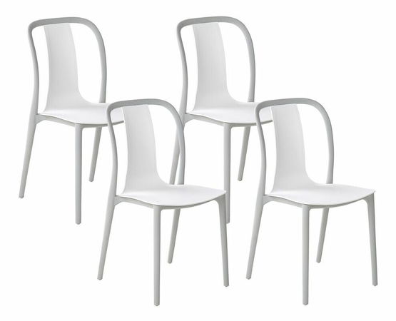 Tato sada praktických židlí je skvělým doplňkem jakéhokoli vnitřního nebo vnějšího prostoru. Židle jsou lehké a robustní a jsou vyrobeny ze syntetického materiálu odolného proti vlivům počasí, který prodlužuje jejich životnost. Moderní silueta židlí vyniká zejména díky nádherné kombinaci bílé a šedé barvy. Trendový design bez opěrek rukou šetří místo u stolu a široká sedadla nabízí úžasný komfort. Židle lze stohovat a jsou vybaveny ochrannými podložkami, které chrání podlahu před poškrábáním.