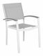 Sada hliníkových zahradních židlí, která díky svému klasickému designu a neutrální barvě, hravě zapadne do jakéhokoli venkovního prostoru. Robustní, bílý rám židlí je doplněn látkovým sedákem a opěradlem v šedé barvě. Loketní opěrky jsou ozdobeny odolnou překližkou, která vás ochrání před studeným kovem. Soupravu doplňte stolem ve stejném stylu a vytvořte si tak venkovní jídelní kout, kde si můžete vychutnat příjemný čas s přáteli a rodinou.