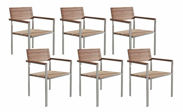 Elegantní zahradní jídelní židle jsou skvělým doplňkem každé moderní zahrady nebo terasy. Jsou vyrobeny z masivního teakového dřeva a broušené nerezavějící oceli, díky čemuž jsou mimořádně odolné. Široká sedadla, vysoká opěradla a opěrky rukou zaručují dokonalý komfort během sezení, ať už si chcete vychutnat slunečné počasí nebo obědvat na zahradě. Design židlí umožňuje jejich stohování a snadné skladování mimo sezónu.