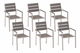 Tato sada šesti jídelních židlí je elegantním doplňkem do každé tradiční nebo moderní zahrady. Židle mají pevný hliníkový rám, který zaručuje stabilitu a dlouhou životnost nábytku. Široká sedadla a klasická opěradla z odolného syntetického dřeva zaručují pohodlné stolování a oporu pro páteř. V sestavě se stolem vám budou sloužit dlouhá léta az každé zahrady udělají místo rodinných oslav.