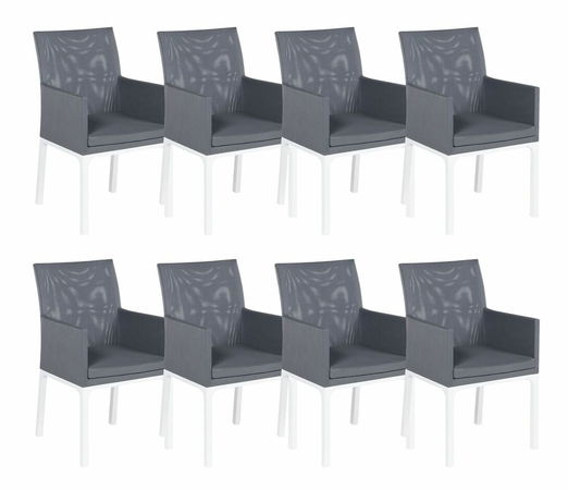 Hliníková souprava zahradních židlí v klasickém designu a neutrální barvě, která se dobře hodí k jakémukoli venkovnímu zařízení. Židle s pohodlnými područkami a vysokým opěradlem zaručují jedinečné pohodlí. Sedadla jsou čalouněna odolným syntetickým materiálem odolným vůči UV záření a dodávají se s tlustými polštáři s potahy odolnými vůči vodě.