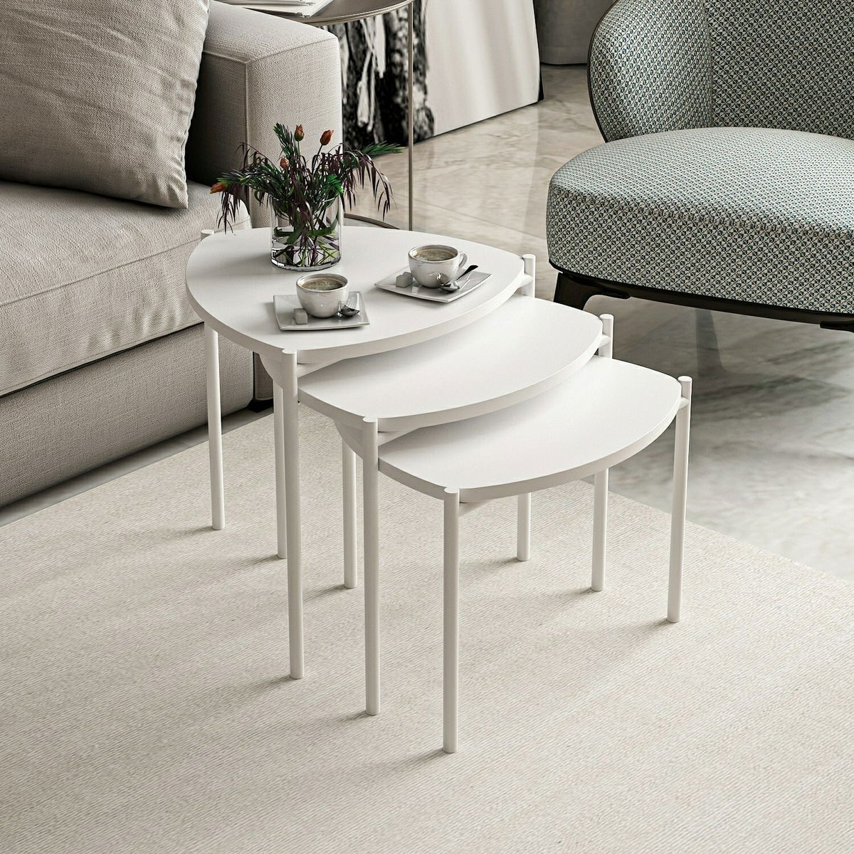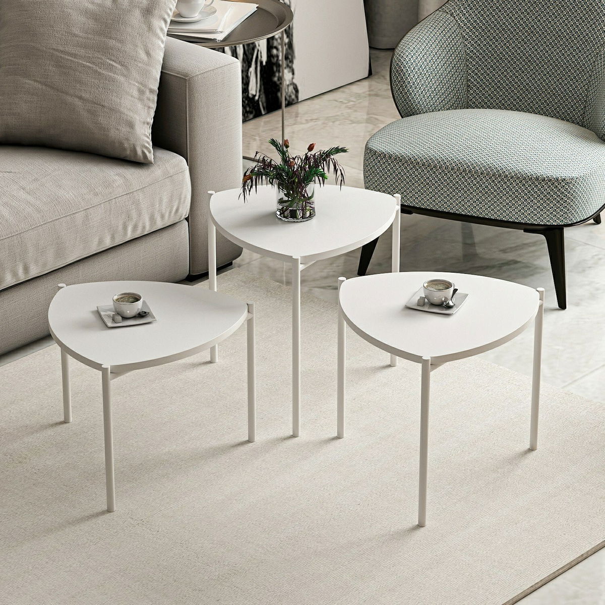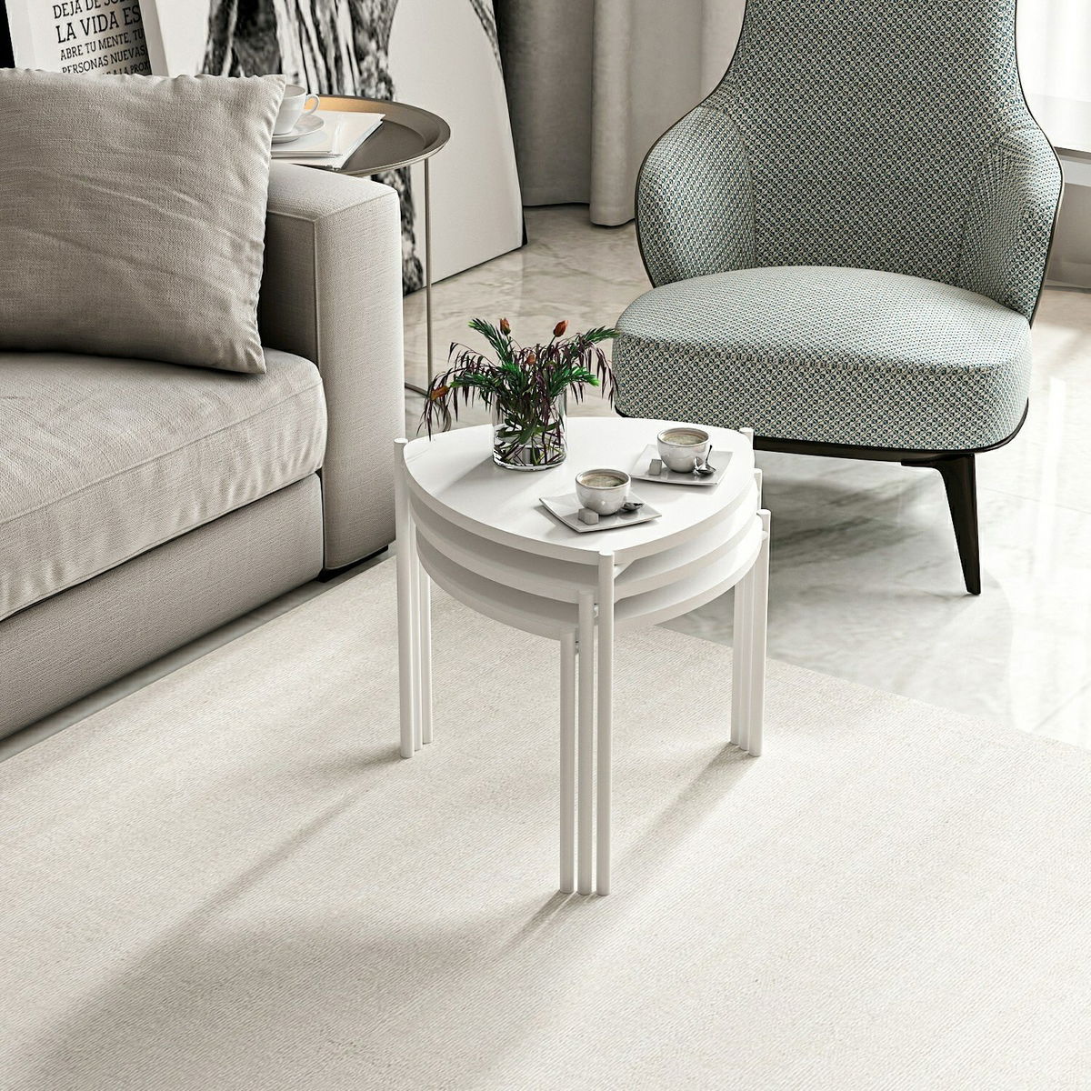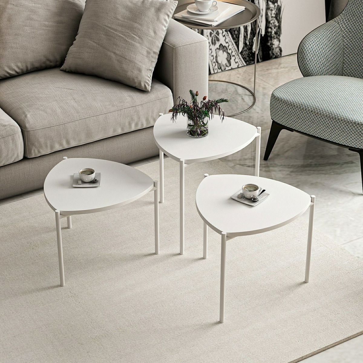 Set konferenčních stolků Lena 3 (Bílá)
