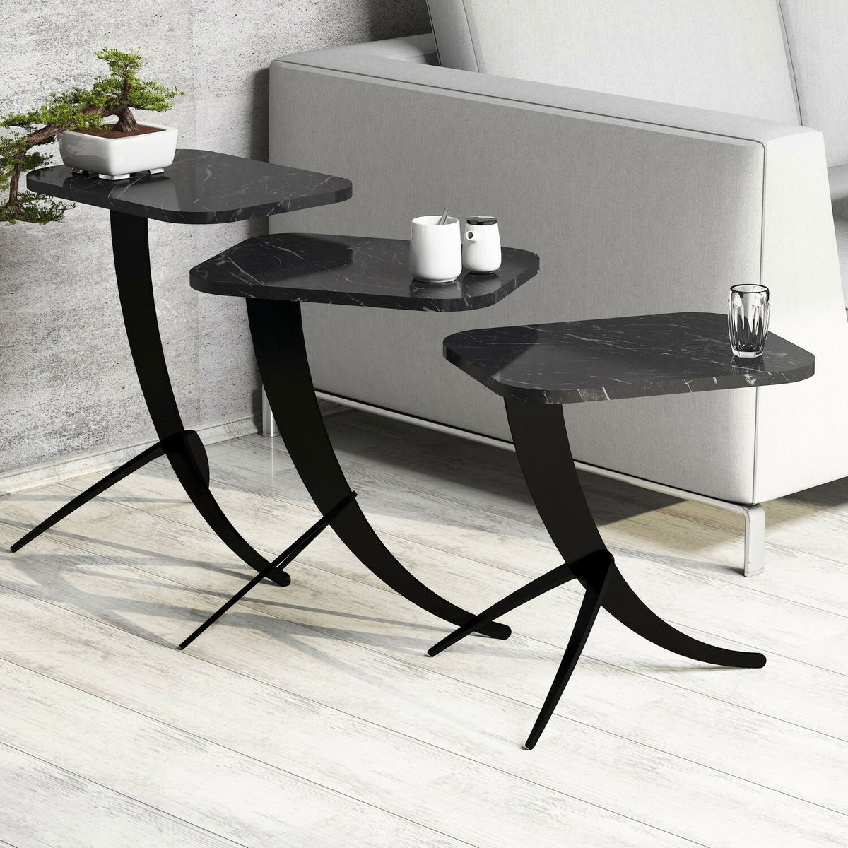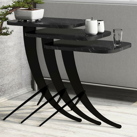 Set konferenčních stolků - Peony (Černá) je skvělým doplňkem pro váš obývací pokoj nebo kancelář. Jsou vyrobeny z kvalitního materiálu a mají elegantní design. S výškou 45 cm, šířkou 35 cm a hloubkou 60 cm jsou tyto stolky dostatečně velké pro umístění knih, nápojů nebo dekorativních předmětů. Černá barva stolků je univerzální a dokonale se hodí ke každému interiéru. Ideální set pro pohodlí a funkčnost ve vaší místnosti.