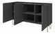Komoda Amaryllis zaujme svojí originalitou a dodá místnosti osobitý charakter. To vše díky jemně integrovaným kovovým nožičkám zlaté barvy, které v kombinaci s černým korpusem vytvářejí mimořádně elegantní kus nábytku. Komoda Amaryllis se nepochybně stane chloubou vkusně zařízeného obývacího pokoje. Pozoruhodný je také vršek komody, který svým vzorem imituje černý a bílý mramor. Na jeho povrchu budou skvěle vypadat ozdobné drobnosti, fotorámečky či jiné pro vás důležité předměty. Moderní charakter nábytku zdůrazňují bezúchytková čela – horní hrana je prodloužena, což umožňuje pohodlné otevírání a zavírání komody.
