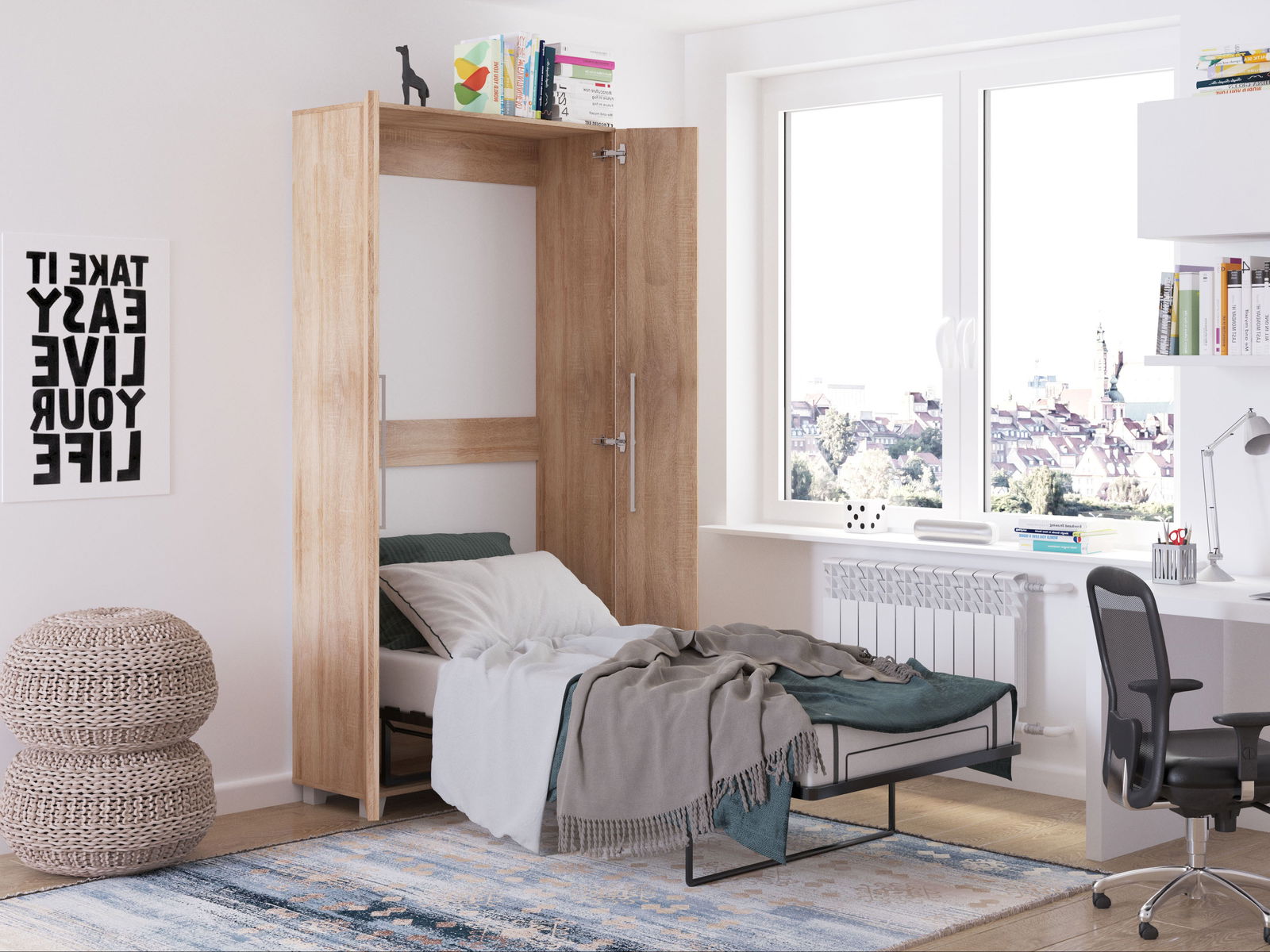 Přemýšleli jste o velké posteli, ale kvůli malému prostoru si ji lze jen stěží dopřát? Nabízíme řešení v podobě rozkládací postele. Přes den skříň, v noci pohodlná postel. Nabízíme v několika barevných variantách i velikostech spací plochy.