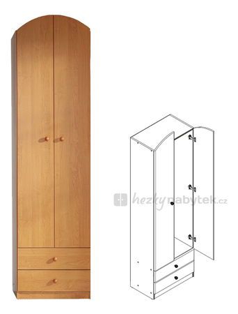 Dvoudveřová skříň AGAT se dvěma zásuvkami.
