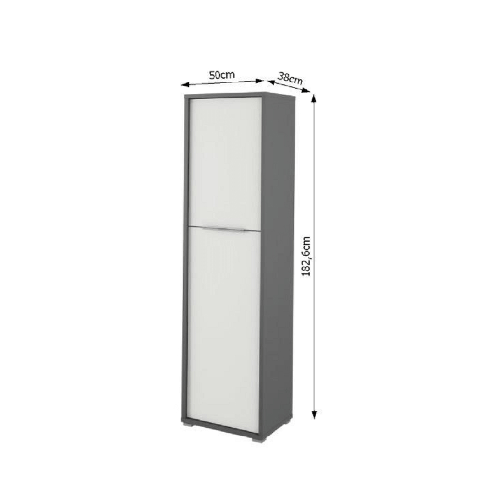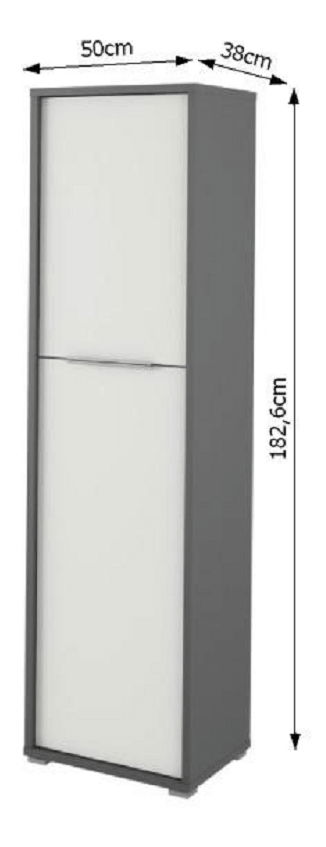Designová minimalistická vysoká skříň se hodí do moderní kanceláře, či pracovny. Úložný prostor tvoří pět polic, které jsou ukryty za čtyřmi dvířky. Je rozdělena na dvě samostatné skříňky. Skříň stojí stabilně na nízkých nožičkách.