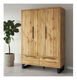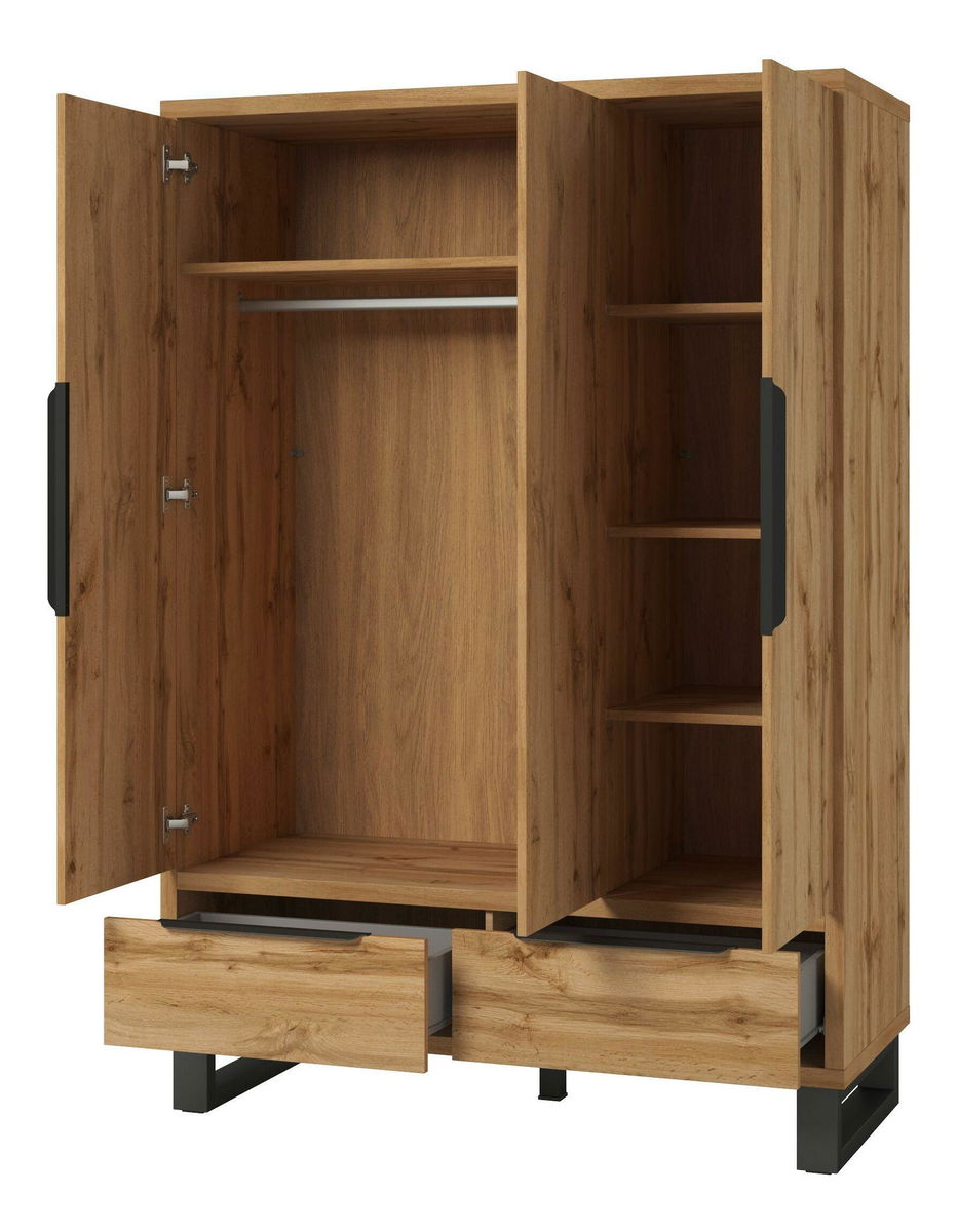 Šatní skříň - Helles M (dub wotan + černá) - Elegantní kousek se 3 dveřmi a 2 zásuvkami pro maximální organizaci vaší domácnosti. Překližka se vzorem dubu wotan a štíhlé minimalistické úchytky dodávají této šatní skříni moderní a zároveň útulný vzhled.