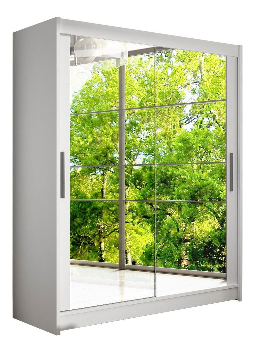 ZobrazitSkříň je ideální volbou pro ty, kteří hledají pohodlí a styl. Rozměry: šířka: 150 cm výška: 200 cm hloubka: 58 cm Barvy: možnost výběru barev zde Vyrobeno: dřevotřísková deska laminovaná 16 mm, Hrany ohranované hranovací páskou ABS, systém posuvných dveří, hliníkové vodící lišty typu Micra z polské firmy Sevroll, zrcadlo si doobjednat za příplatek Záruční doba: 24 měsíců