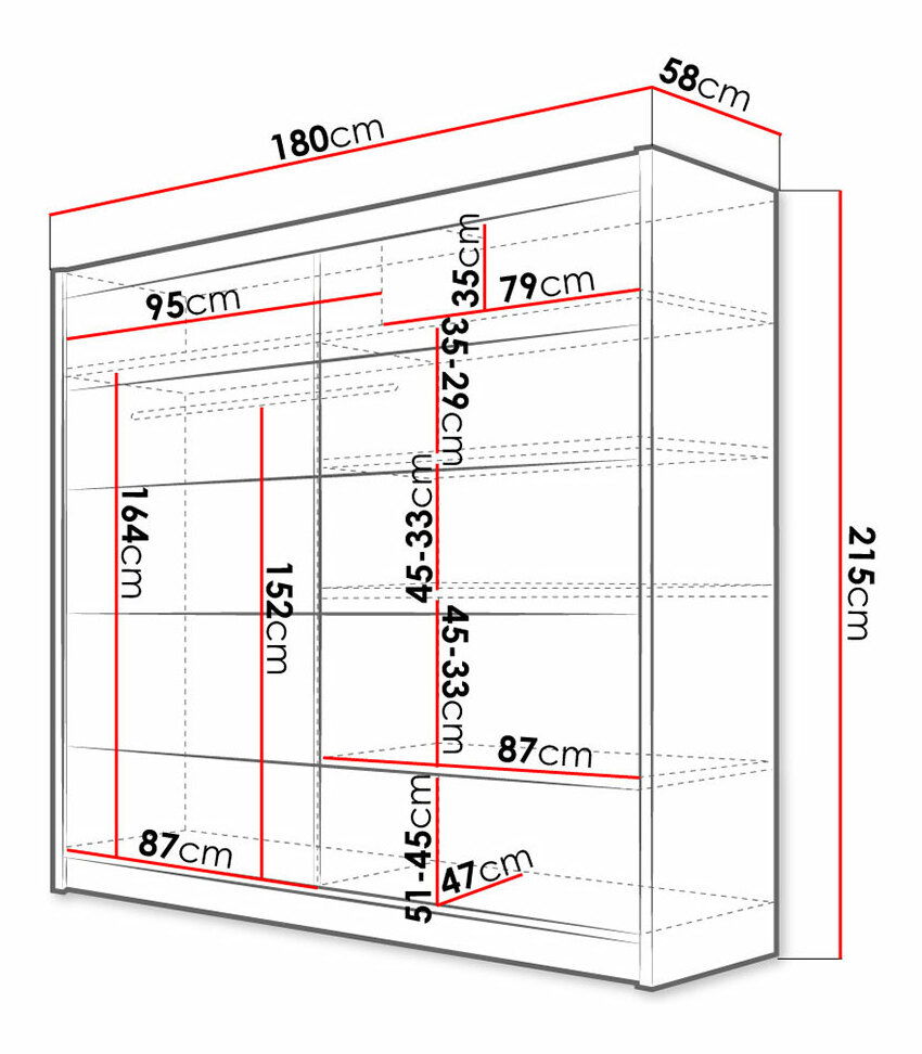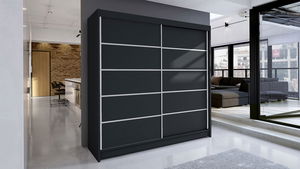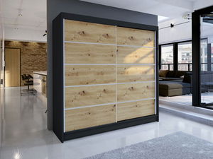 ZobrazitVelká posuvná skříň Bastian IV je dobře uspořádaný úložný prostor. Na police uvnitř můžete snadno umístit složené oblečení, jakož i doplňky, jako jsou tašky, klobouky a šátky. Své oblíbené oblečení budete chránit před nadměrným pokrčením tak, že je umístíte do části, kde se na ramínkách zavěsí šaty. Na druhé straně, horní police jsou skvělým místem pro vzácně používané věci, kufry nebo náhradní přikrývky. Výhodou šatníku je také široký výběr barev. Použitím dostupné barevné palety nakonfigurujete kus nábytku, který dokonale ladí s ostatními prvky vybavení obývacího pokoje, ložnice nebo haly.