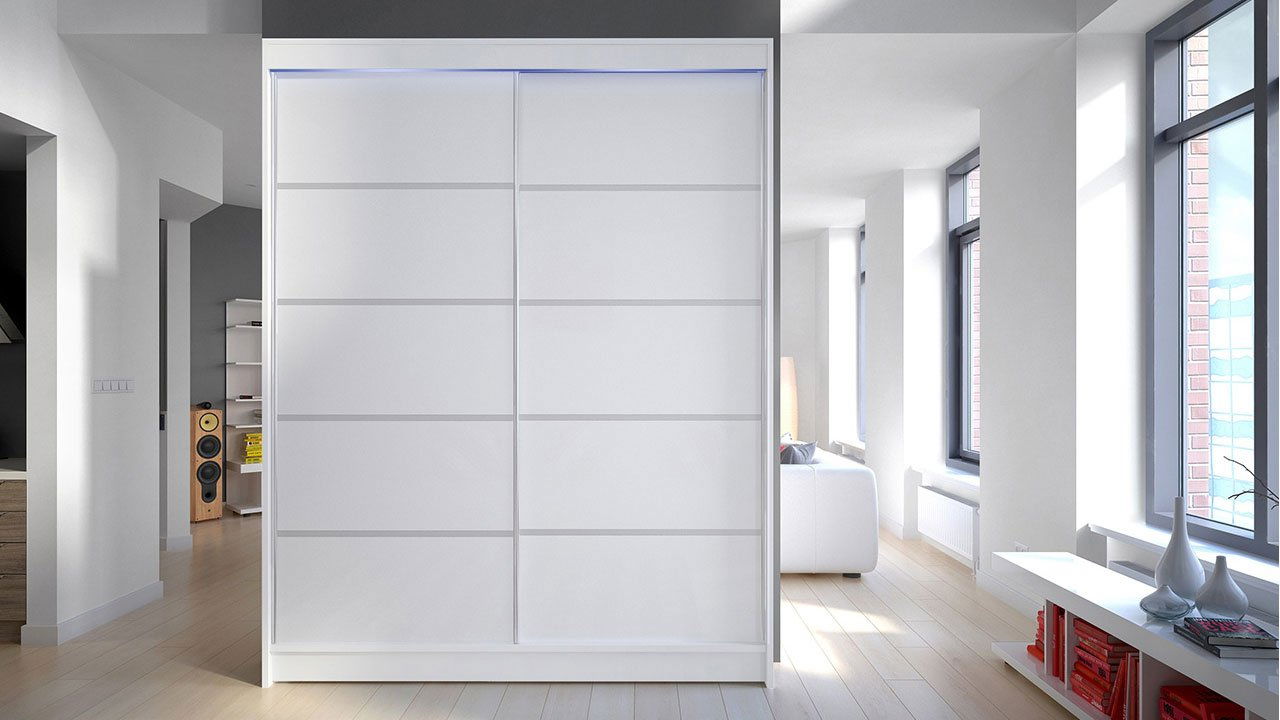 Skříň s posuvnými dveřmi Bianca IV (bílá) (osvětlení LED RGB barevné)