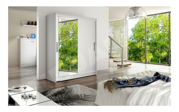 Skříň s posuvnými dveřmi Primrose VI (bílá + zrcadlo) (bez osvětlení)
