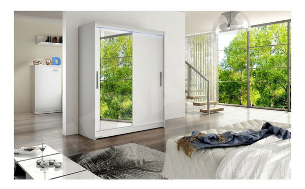 Skříň s posuvnými dveřmi Primrose VI (bílá + zrcadlo) (osvětlení LED RGB barevné)