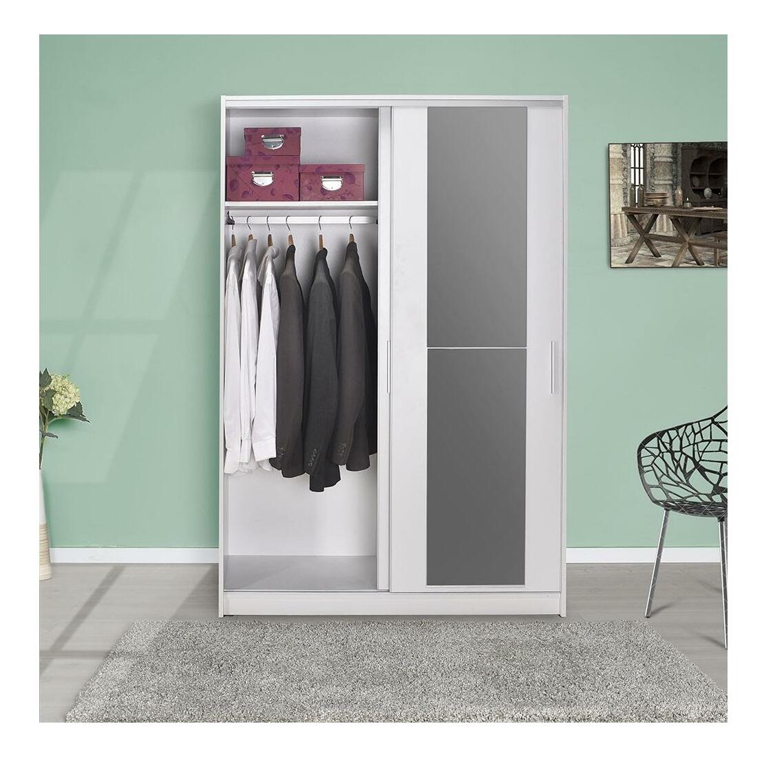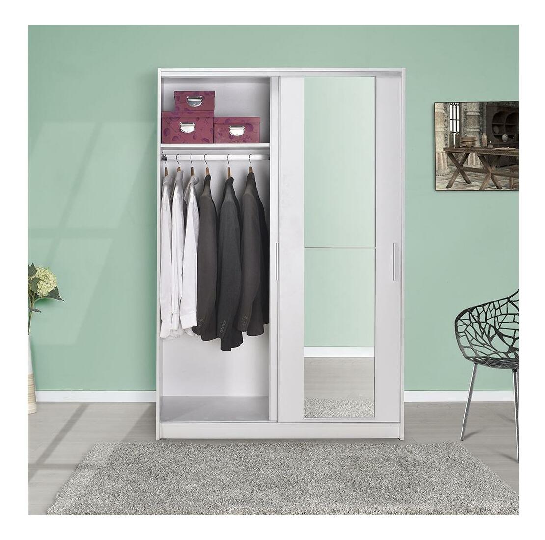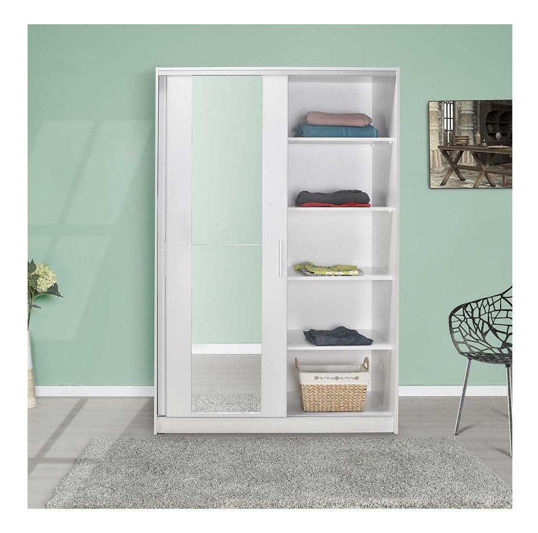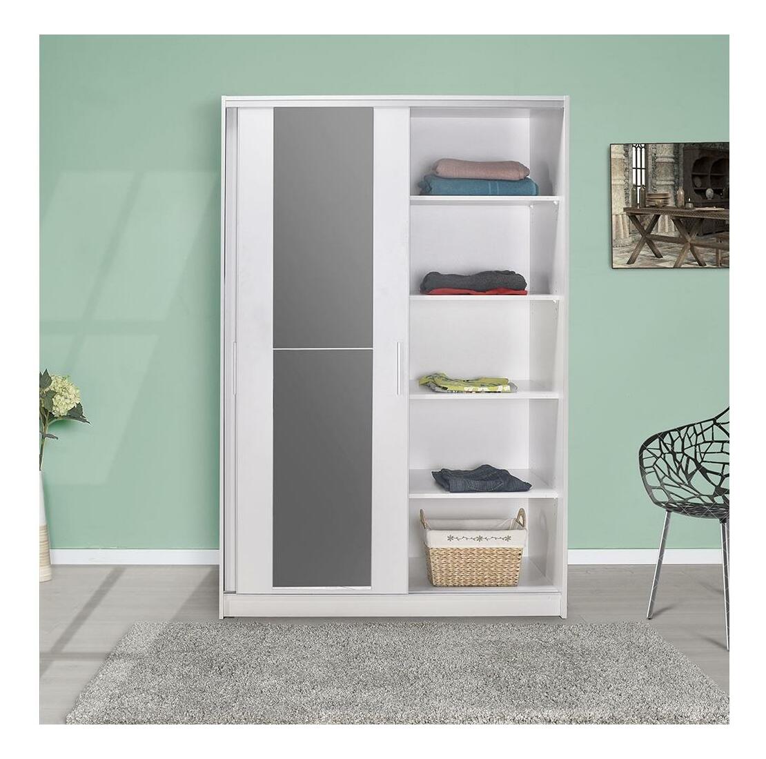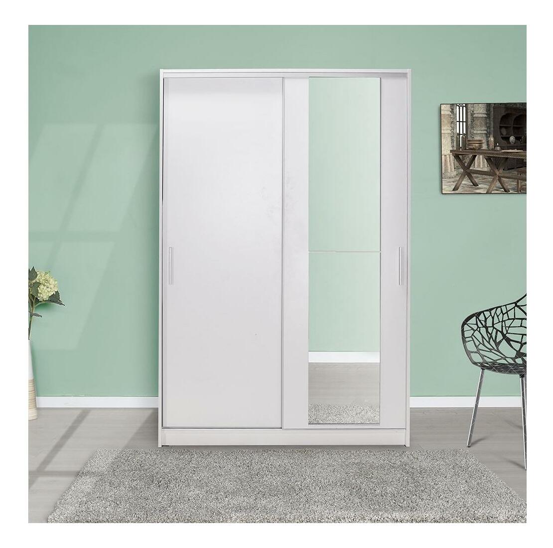 Skříň s posuvnými dveřmi Solstice 2 (bílá) (se zrcadlem)