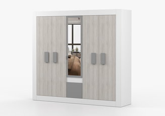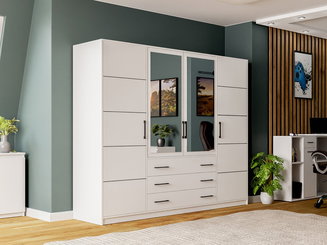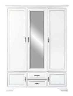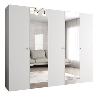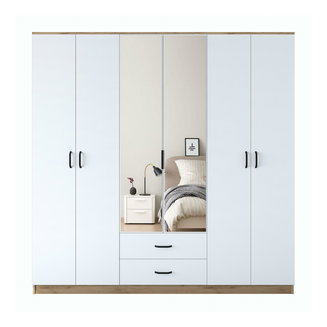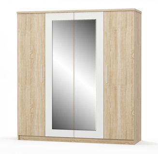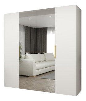 Šatní skříň Tiera (bílá lesklá + dub navarre)