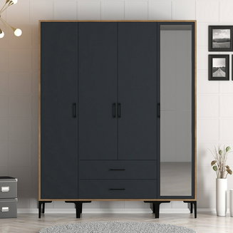 Šatní skříň Lafer 5D (bílá) (se zrcadlem)