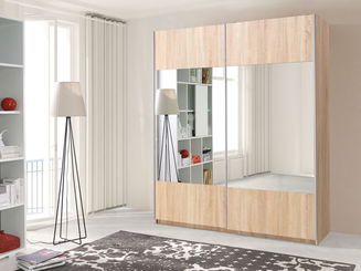 Šatní skříň Benson Typ 58 (san remo světlý + bílá + zrcadlo)