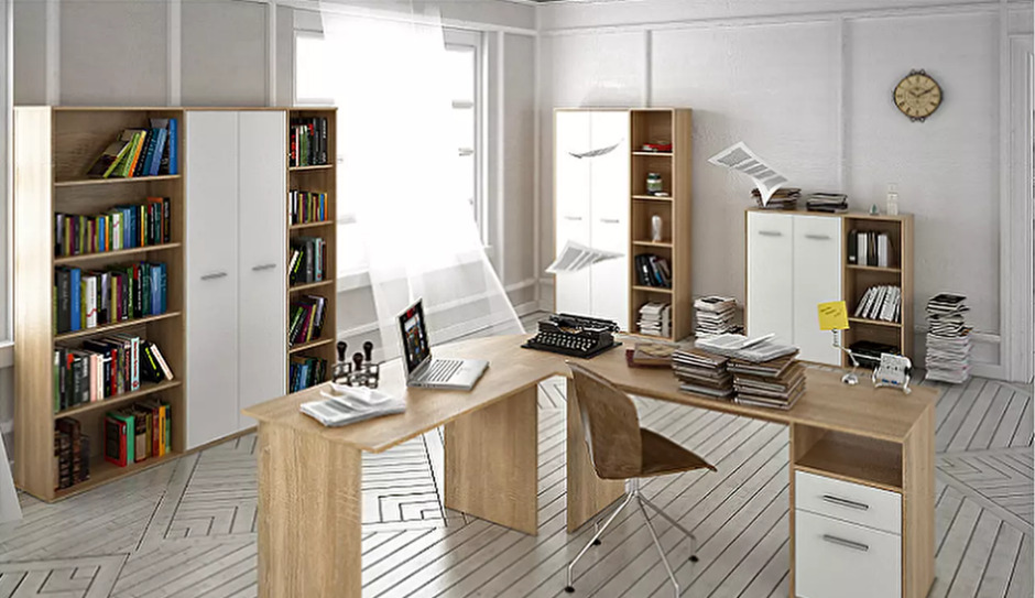 Skříně s otevřenými policemi uvítáte v každé pracovně díky dostatečnému a přístupnému úložnému prostoru.