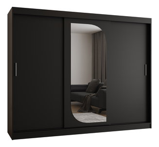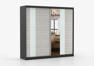 Šatní skříň s posuvnými dveřmi Foktra 3 180 (kašmír + černá) (se zrcadlem)