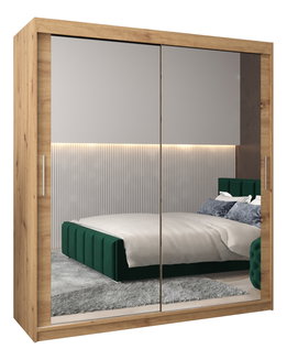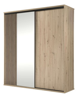 Šatní skříň 180 cm Ladonna 2 (dub artisan + černá matná) (se zrcadlem)
