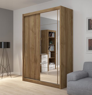 Šatní skříň Benson Typ 77 (dub monastery + černá + zrcadlo)