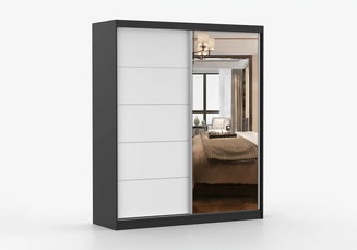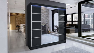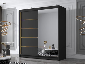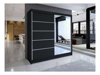 Šatní skříň s posuvnými dveřmi Foktra 3 180 (kašmír + černá) (se zrcadlem)