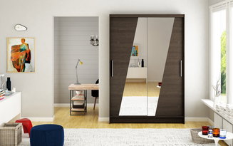 Šatní skříň Musecalo 1 (antracit + dub artisan) (se zrcadlem)