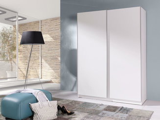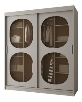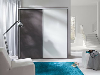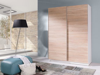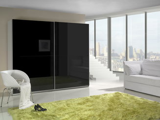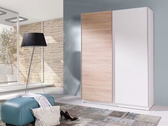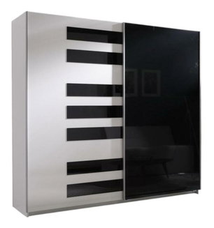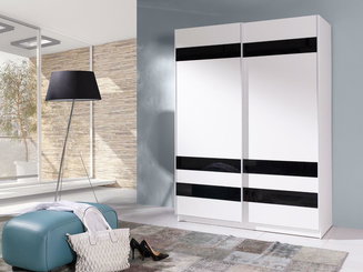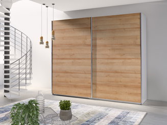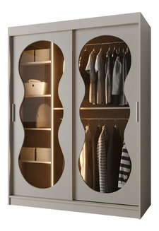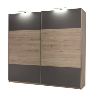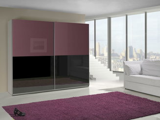 Šatní skříň s posuvnými dveřmi Lataressa 1 (dub burgundský + lesk bílý) (s LED osvětlením)