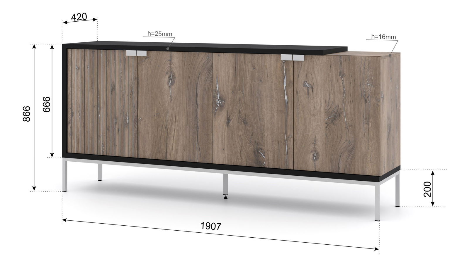 Skříňka 190 4D Toleo (dub flasgstaff + černá + stříbrná)