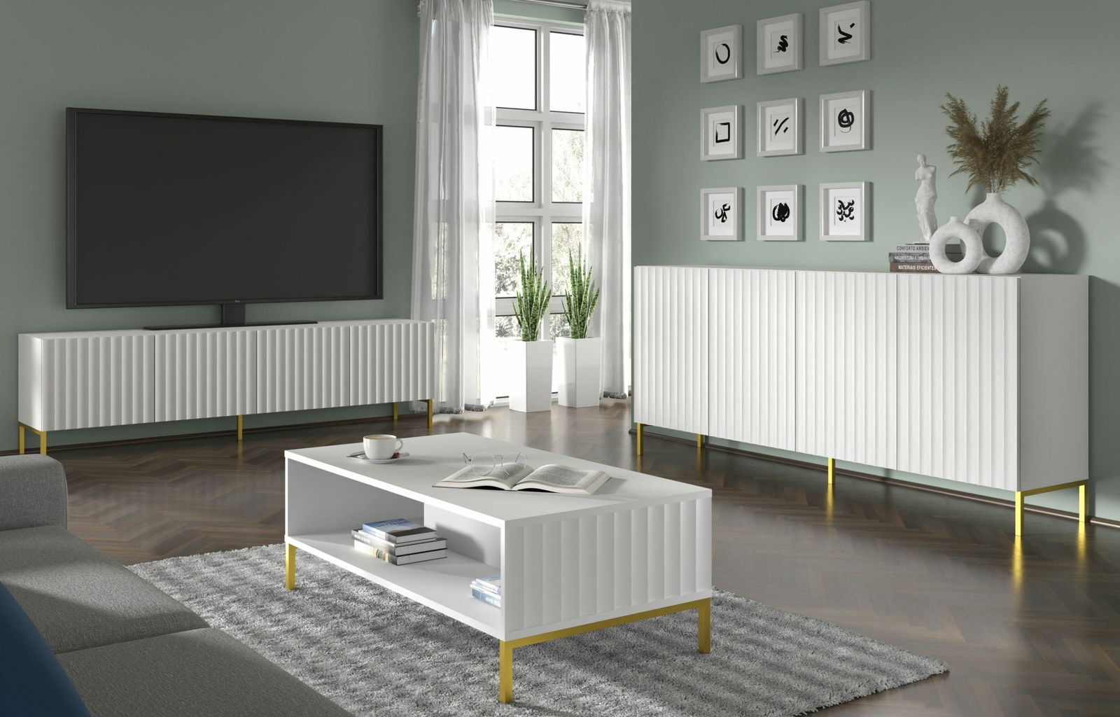 Skříňka 200 4D Warsaw (bílá + zlatá)