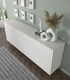 ZobrazitSkříňka z kolekce je prostorná a poskytuje dostatek úložného prostoru. Nábytek o šířce 200 cm má 4 uzamykatelné přihrádky a další vnitřní police, které usnadňují organizaci. Komoda je vybavena bezúchytkovým systémem – přední části se otevírají systémem push to open.