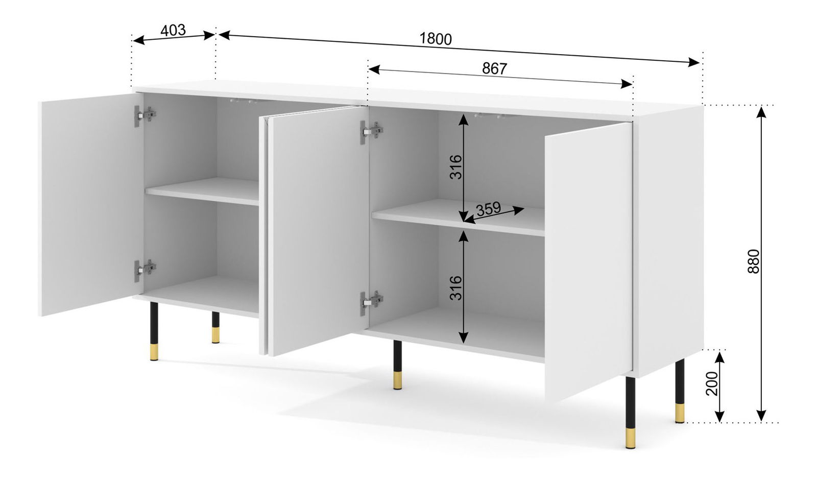 ZobrazitSkříňka je čtyřdveřový kus nábytku určený pro funkční úložné prostory v obývacím pokoji, ložnici nebo kanceláři. Nabízí dostatek úložného prostoru a její interiér je vybaven dalšími policemi pro usnadnění organizace. Použití systému PUSH TO OPEN je moderní řešení, které zjednodušuje každodenní používání.