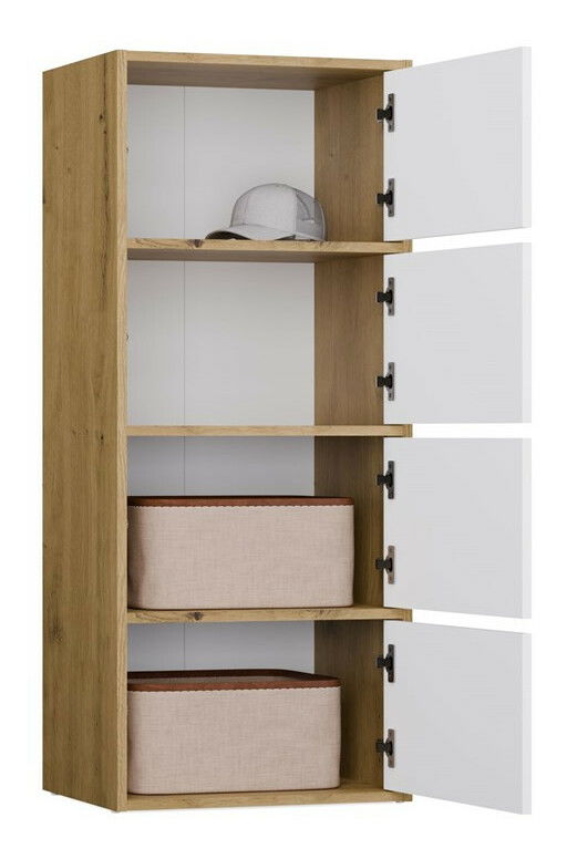 ZobrazitSkříňka Afoctera 1 v elegantní kombinaci dub artisan a bílá je ideálním řešením pro moderní interiéry. Její minimalistický design a bezuchvytový systém TIP-ON umožňují snadné a pohodlné otevírání, přičemž vnitřní poličky poskytují dostatek úložného prostoru pro různé předměty. Vyrobená z laminované dřevotřískové desky, skříňka je odolná vůči poškrábání a snadno se udržuje. S výškou 119 cm a hloubkou 40 cm se skvěle hodí do obývacího pokoje, ložnice či dětského pokoje, přičemž dodává každému prostoru nádech elegance a funkčnosti.
