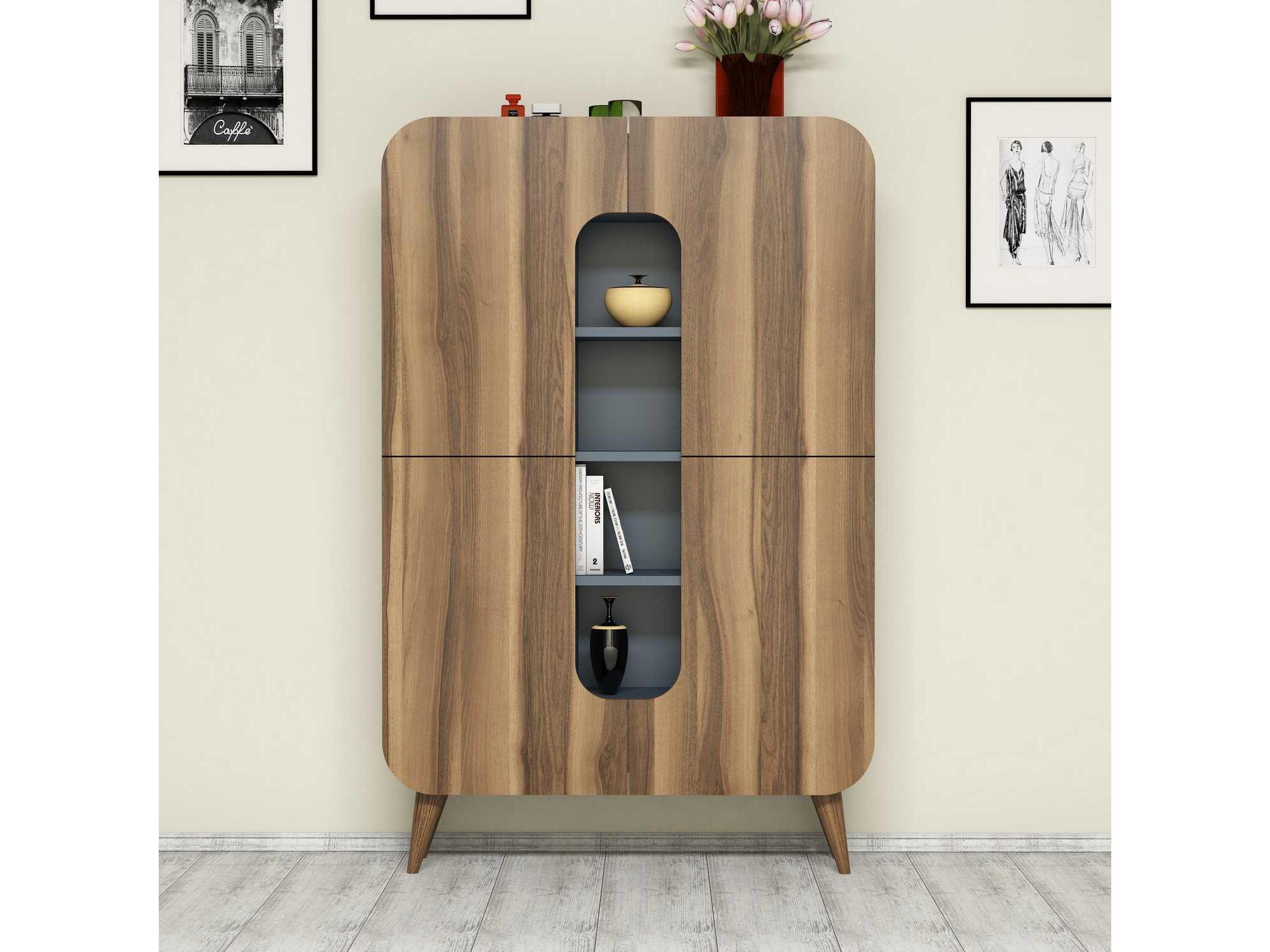 ZobrazitStylová skříňka Azanat 89 4D na nožičkách je mistrem v úložném prostoru. Díky prostorným skříňkám poskytuje dostatek prostoru pro různé druhy předmětů. Do skříňky můžeme umístit oblečení, doplňky, dokumenty či jednotlivé nádobí. Pečlivě zvážená výška každé police slouží k maximálnímu využití dostupného prostoru. Ceněnou předností nábytku je jeho designový vzhled. Módní barvy v kombinaci s originálním designem předních front dokonale zapadnou jak do moderních aranžmá, tak do aranžmá inspirovaných art deco. Celek dotváří vysoké nohy. V praxi dodávají komodě lehkost a usnadňují udržování podlahy v čistotě.