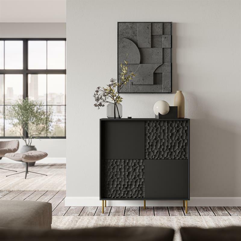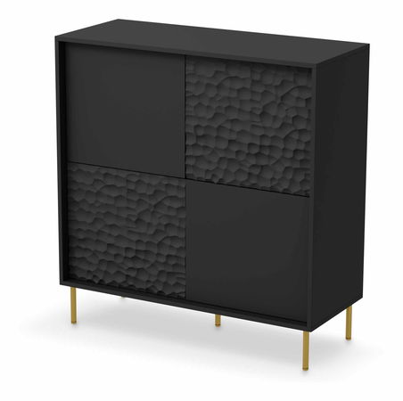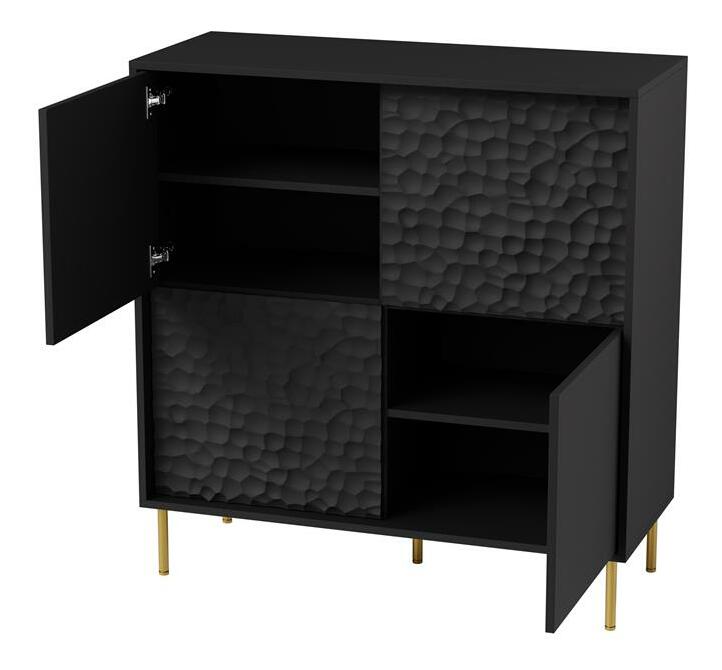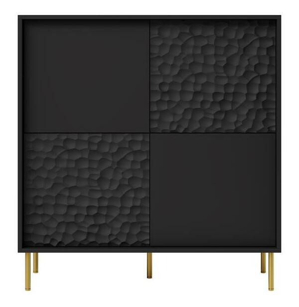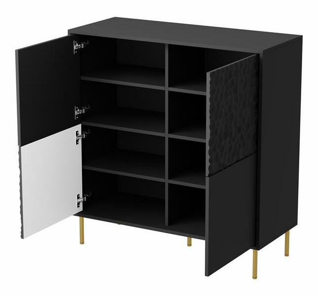 Komoda Balle v černo-zlaté kombinaci je elegantní kus nábytku, který by se hodil do každé moderní domácnosti. S výškou 105 cm a hloubkou 41 cm poskytuje dostatek úložného prostoru pro vaše potřeby. odolnost a dlouhou životnost Samostatně objednatelná rukojeť umožňuje přizpůsobit komodu vašim preferencím. Osvětlení není součástí dodávky, ale můžete si jej objednat v našem e-shopu. Rozměry jednotlivých balíků jsou uvedeny v poznámce.