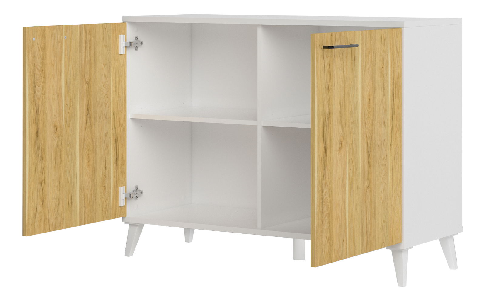 Skříňka Barilus 44 je skvělým doplňkem pro váš domov. S výškou 83 cm, šířkou 110 cm a hloubkou 42 cm nabízí dostatek úložného prostoru pro vaše věci. Jeho unikátní design kombinuje přírodní odstín ořechu amerického s elegantní bílou barvou, což mu dodává sofistikovaný vzhled. Skříňka je vyrobena z kvalitních materiálů, což zaručuje její pevnost a trvanlivost. S Barilus 44 můžete uspořádat a organizovat své věci tak, aby byly vždy na dosah ruky a zároveň esteticky uspořádány. Nechte se okouzlit elegancí a praktičností této skříňky a dopřejte si skvělý kousek nábytku do vašeho interiéru.