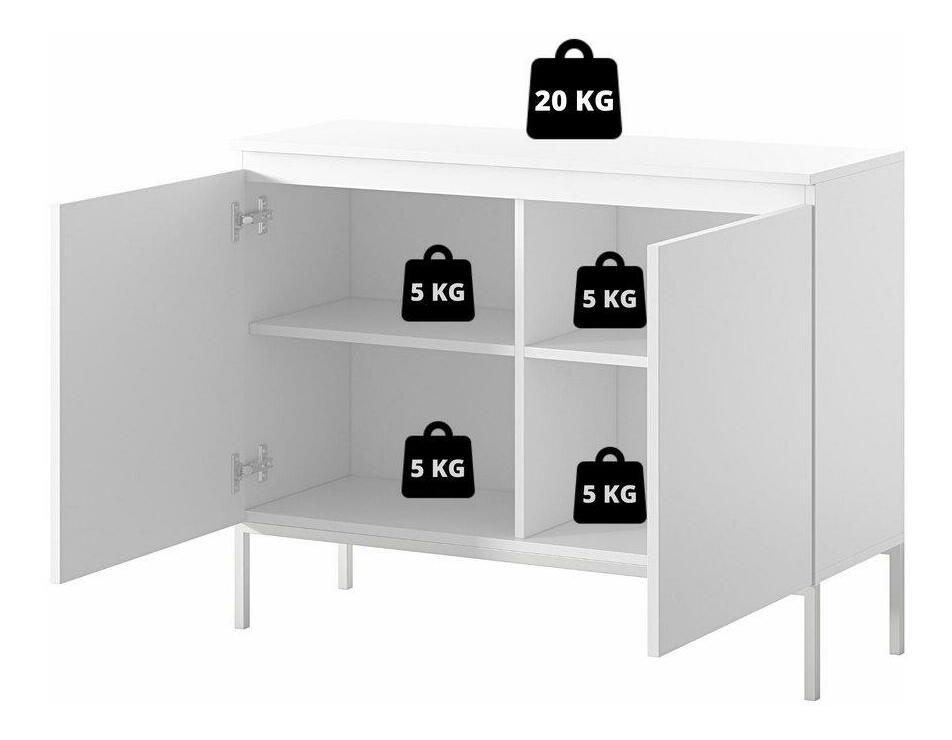 Hledáte nábytek, který má jednoduchou formu a dokonale zapadne do většiny aranžmá? Pak vás jistě zaujme kolekce Dvoudveřová komoda je univerzálního tvaru, umístěná na úzkých ocelových nožičkách, které dodávají celku vizuální lehkost. Kombinace přírodní béžové s černými nožičkami dokonale zapadne nejen do minimalistického, ale také moderního a atmosférického interiéru s nádechem glamour. Prostor uvnitř nábytku je rozdělen na čtyři praktické police, do kterých se úspěšně vejdou všechny vaše věci. Výhodou nábytku jsou vysoké nohy, které bez problémů umožní čištění pod nábytkem, i pro čistící roboty Detaily: nábytek z dřevotřísky 16 mm, podnož: ocelový profil 18x18 mm, prášk lakovaný v černé barvě, maximální zatížení police: 5. kg,