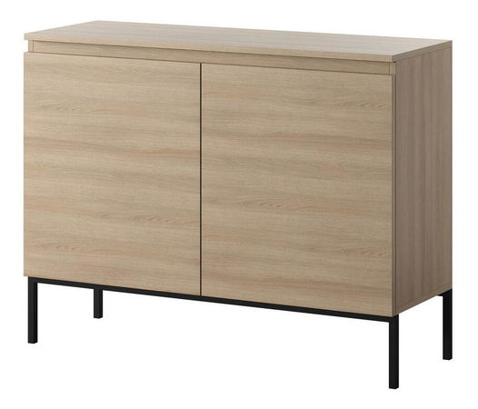 Hledáte nábytek, který má jednoduchou formu a dokonale zapadne do většiny aranžmá? Pak vás jistě zaujme kolekce TV skříňka je univerzálního tvaru, umístěná na úzkých ocelových nožičkách, které dodávají celku vizuální lehkost. Kombinace přírodního dubu s černýma nohama se bude skvěle hodit nejen do minimalistického, ale také moderního interiéru s nádechem glamour. Prostor uvnitř nábytku je rozdělen na čtyři praktické police, do kterých se úspěšně vejdou všechny vaše věci. Výhodou nábytku jsou vysoké nohy, které bez problémů umožní čištění pod nábytkem i pro čistící roboty Detaily: nábytek z dřevotřísky 16 mm, podnož: ocelový profil 18x18 mm, prášk lakovaný v černé barvě, maximální zatížení police: 5. kg.