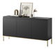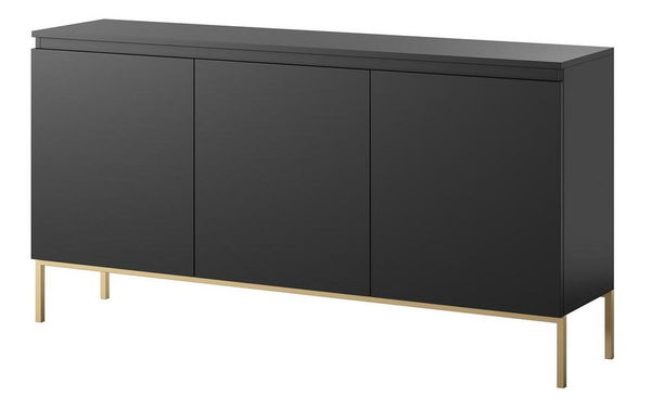 Hledáte nábytek, který má jednoduchou formu a dokonale zapadne do většiny aranžmá? Pak vás kolekce jistě zaujme! Třídveřová komoda je univerzálního tvaru, umístěná na úzkých ocelových nožičkách, které dodávají celku vizuální lehkost. Kombinace černé barvy se zlatými nožičkami skvěle zapadne nejen do minimalistického, ale také moderního interiéru s nádechem glamour. Prostor uvnitř nábytku je rozdělen do šesti polic, do kterých se úspěšně vejdou všechny vaše věci – od oblečení až po důležité dokumenty. Výhodou nábytku jsou vysoké nohy, které snadno umožní čistícím robotům udržet pod nábytkem čistotu. Detaily: nábytek vyrobený z 16 mm dřevotřísky, základna: ocelový profil 18x18 mm, práškové zlato, maximální zatížení polic: 5 kg, barva: černá.