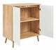 Tato elegantní skříňka v minimalistickém skandinávském stylu je ideálním doplňkem do každého moderního interiéru. Je vyrobena z odolného MDF materiálu a dřevotřískové desky, takže nevyžaduje každodenní údržbu a vydrží dlouhá léta. Za dvířky jsou umístěny prostorné police, které jsou ideální pro odkládání oblečení, doplňků nebo různých drobností.