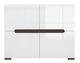 Dvoudveřová skříňka REG4D_8_11 ze série Azteca značky BRW je pěkná skříňka kompaktních rozměrů v moderním designu. Skříňka má vnitřní prostor rozdělen horizontálně i vertikálně a poskytne Vám 4 samostatné prostory. Skříňku máme k dispozici v barevných provedeních lesklé bílé barvy a v barvě dubového dřeva. Elegantnost skříňky dotváří ozdobná lišta v barvě dřeva wenge, skříňka je vyrobena z kvalitních materiálů.