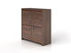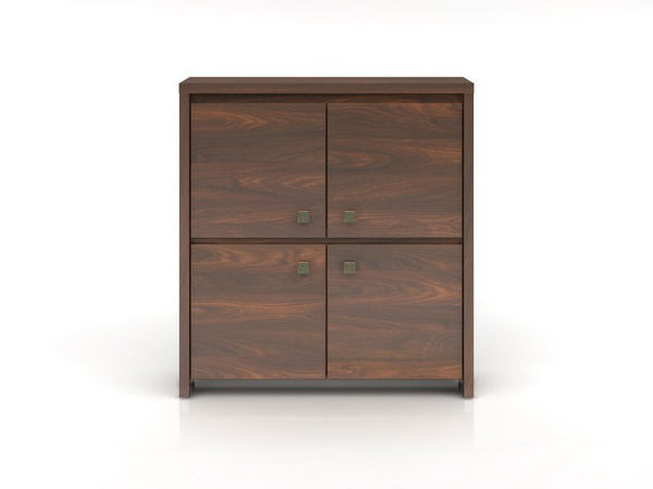 Krásná skříňka, která vás okouzlí rustikálním stylem, tmavým barevným provedením a kresbou dřeva. Skříňka má čtyři dvířka s kovovoými čtvercovými úchyty. Zkrášlete si s ní obývací pokoj, ložnici nebo pracovnu.