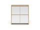 Elegantní skříňka jednoduchého designu se čtyřmi čtvercovými dvířky. Minimalistický styl skříňky zmodernizuje vaše interiéry. Dvířka na skříňce nemají úchyty, ale místo toho mají zkosené horní hrany.
